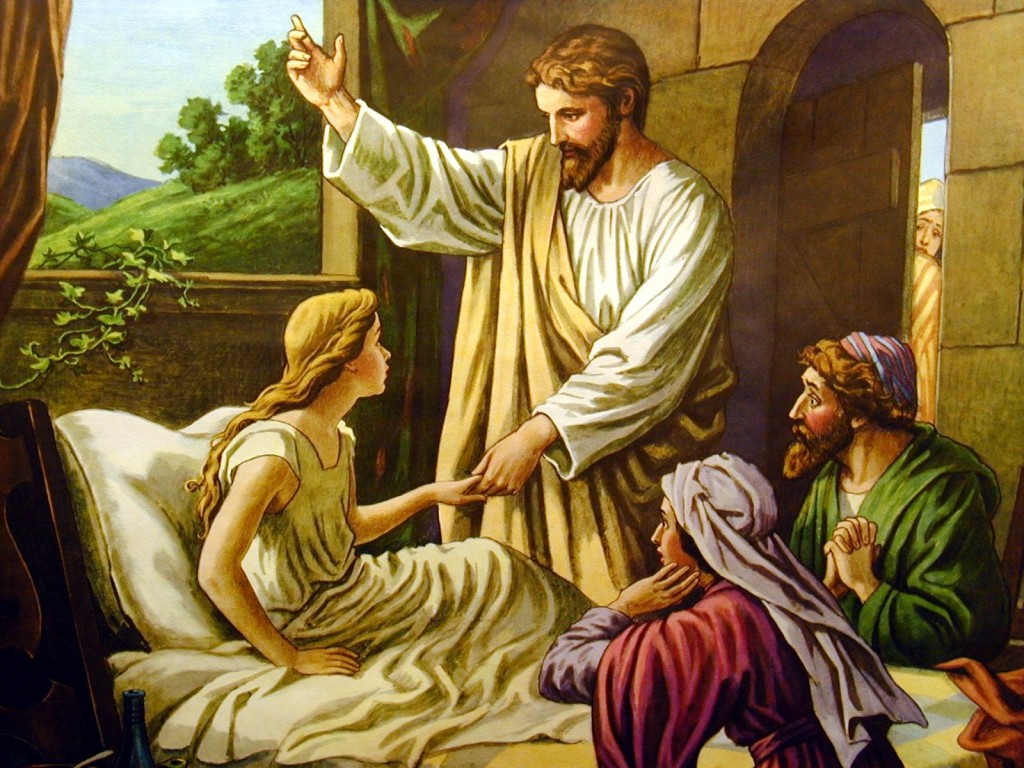 Naquele tempo, estava Jesus a falar aos seus discípulos, quando um chefe se aproximou e se prostrou diante d’Ele, dizendo: «A minha filha acaba de falecer. Mas vem impor a mão sobre ela e viverá». Jesus levantou-Se e acompanhou-o com os discípulos. Entretanto, uma mulher que sofria um fluxo de sangue havia doze anos, aproximou-se por detrás d’Ele e tocou-Lhe na fímbria do manto, pensando consigo: «Se eu ao menos Lhe tocar no manto, ficarei curada». Mas Jesus voltou-Se e, ao vê-la, disse-lhe: «Tem confiança, minha filha. A tua fé te salvou». E a partir daquele momento a mulher ficou curada. Ao chegar a casa do chefe e ao ver os tocadores de flauta e a multidão em grande alvoroço, Jesus disse-lhes: «Retirai-vos, porque a menina não morreu; está a dormir». Riram-se d’Ele. Mas quando mandou sair a multidão, Jesus entrou, tomou a menina pela mão e ela levantou-se. E a notícia divulgou-se por toda aquela terra.