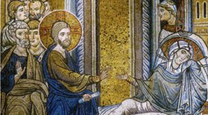 Naquele tempo, Jesus saiu da sinagoga e foi, com Tiago e João, a casa de Simão e André. A sogra de Simão estava de cama com febre e logo Lhe falaram dela. Jesus aproximou-Se, tomou-a pela mão e levantou-a. A febre deixou-a e ela começou a servi-los. Ao cair da tarde, já depois do sol-posto, trouxeram-Lhe todos os doentes e possessos e a cidade inteira ficou reunida diante da porta. Jesus curou muitas pessoas, que eram atormentadas por várias doenças, e expulsou muitos demónios. Mas não deixava que os demónios falassem, porque sabiam quem Ele era. De manhã, muito cedo, levantou-Se e saiu. Retirou-Se para um sítio ermo e aí começou a orar. Simão e os companheiros foram à procura d’Ele e, quando O encontraram, disseram-Lhe: «Todos Te procuram». Ele respondeu-lhes: «Vamos a outros lugares, às povoações vizinhas, a fim de pregar aí também, porque foi para isso que Eu vim». E foi por toda a Galileia, pregando nas sinagogas e expulsando os demónios.