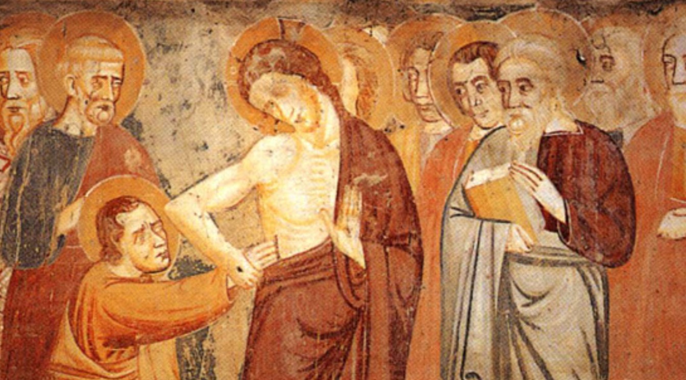 Na tarde daquele dia, o primeiro da semana, estando fechadas as portas da casa onde os discípulos se encontravam, com medo dos judeus, veio Jesus, apresentou-Se no meio deles e disse-lhes: «A paz esteja convosco». Dito isto, mostrou-lhes as mãos e o lado. Os discípulos ficaram cheios de alegria ao verem o Senhor. Jesus disse-lhes de novo: «A paz esteja convosco. Assim como o Pai Me enviou, também Eu vos envio a vós». Dito isto, soprou sobre eles e disse-lhes: «Recebei o Espírito Santo: àqueles a quem perdoardes os pecados ser-lhes-ão perdoados; e àqueles a quem os retiverdes ser-lhes-ão retidos». Tomé, um dos Doze, chamado Dídimo, não estava com eles quando veio Jesus. Disseram-lhe os outros discípulos: «Vimos o Senhor». Mas ele respondeu-lhes: «Se não vir nas suas mãos o sinal dos cravos, se não meter o dedo no lugar dos cravos e a mão no seu lado, não acreditarei». Oito dias depois, estavam os discípulos outra vez em casa e Tomé com eles. Veio Jesus, estando as portas fechadas, apresentou-Se no meio deles e disse: «A paz esteja convosco». Depois disse a Tomé: «Põe aqui o teu dedo e vê as minhas mãos; aproxima a tua mão e mete-a no meu lado; e não sejas incrédulo, mas crente». Tomé respondeu-Lhe: «Meu Senhor e meu Deus!». Disse-lhe Jesus: «Porque Me viste acreditaste: felizes os que acreditam sem terem visto». Muitos outros milagres fez Jesus na presença dos seus discípulos, que não estão escritos neste livro. Estes, porém, foram escritos para acreditardes que Jesus é o Messias, o Filho de Deus, e para que, acreditando, tenhais a vida em seu nome.