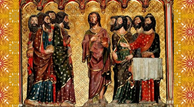 Quando Judas saiu do Cenáculo, disse Jesus aos seus discípulos: «Agora foi glorificado o Filho do homem e Deus foi glorificado n’Ele. Se Deus foi glorificado n’Ele, Deus também O glorificará em Si mesmo e glorificá-l’O-á sem demora. Meus filhos, é por pouco tempo que ainda estou convosco. Dou-vos um mandamento novo: que vos ameis uns aos outros. Como Eu vos amei, amai-vos também uns aos outros. Nisto conhecerão todos que sois meus discípulos: se vos amardes uns aos outros».