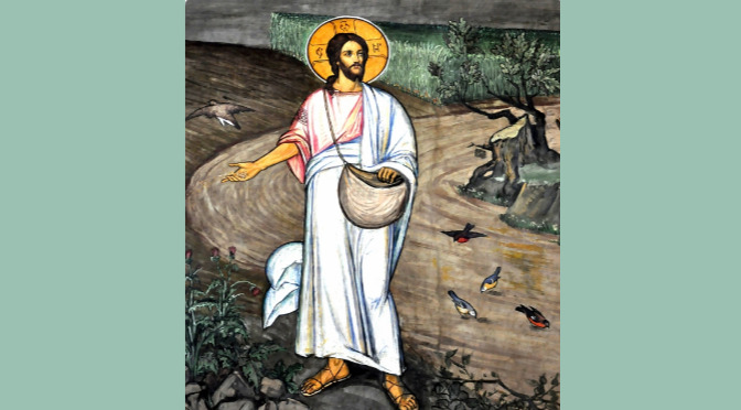 Naquele tempo, Jesus saiu de casa e foi sentar-Se à beira-mar. Reuniu-se à sua volta tão grande multidão que teve de subir para um barco e sentar-Se, enquanto a multidão ficava na margem. Disse muitas coisas em parábolas, nestes termos: «Saiu o semeador a semear. Quando semeava, caíram algumas sementes ao longo do caminho: vieram as aves e comeram-nas. Outras caíram em sítios pedregosos, onde não havia muita terra, e logo nasceram porque a terra era pouco profunda; mas depois de nascer o sol, queimaram-se e secaram, por não terem raiz. Outras caíram entre espinhos e os espinhos cresceram e afogaram-nas. Outras caíram em boa terra e deram fruto: umas, cem; outras, sessenta; outras, trinta por um. Quem tem ouvidos, oiça».