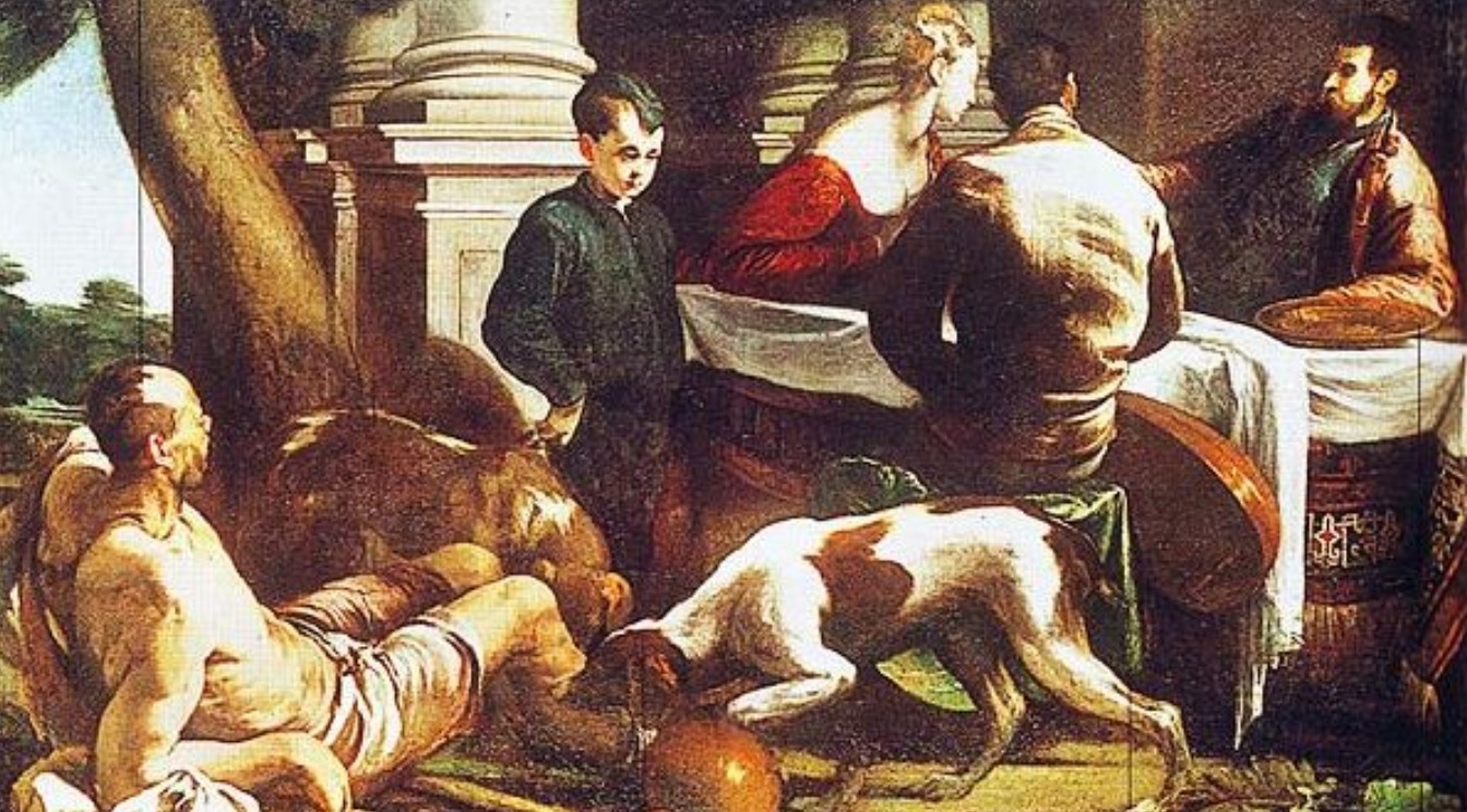 Naquele tempo, disse Jesus aos fariseus: «Havia um homem rico, que se vestia de púrpura e linho fino e se banqueteava esplendidamente todos os dias. Um pobre, chamado Lázaro, jazia junto do seu portão, coberto de chagas. Bem desejava saciar-se do que caía da mesa do rico, mas até os cães vinham lamber-lhe as chagas. Ora sucedeu que o pobre morreu e foi colocado pelos Anjos ao lado de Abraão. Morreu também o rico e foi sepultado. Na mansão dos mortos, estando em tormentos, levantou os olhos e viu Abraão com Lázaro a seu lado. Então ergueu a voz e disse: ‘Pai Abraão, tem compaixão de mim. Envia Lázaro, para que molhe em água a ponta do dedo e me refresque a língua, porque estou atormentado nestas chamas’. Abraão respondeu-lhe: ‘Filho, lembra-te que recebeste os teus bens em vida e Lázaro apenas os males. Por isso, agora ele encontra-se aqui consolado, enquanto tu és atormentado. Além disso, há entre nós e vós um grande abismo, de modo que se alguém quisesse passar daqui para junto de vós, ou daí para junto de nós, não poderia fazê-lo’. O rico insistiu: ‘Então peço-te, ó pai, que mandes Lázaro à minha casa paterna – pois tenho cinco irmãos – para que os previna, a fim de que não venham também para este lugar de tormento’. Disse-lhe Abraão: ‘Eles têm Moisés e os Profetas: que os oiçam’. Mas ele insistiu: ‘Não, pai Abraão. Se algum dos mortos for ter com eles, arrepender-se-ão’. Abraão respondeu-lhe: ‘Se não dão ouvidos a Moisés nem aos Profetas, também não se deixarão convencer, se alguém ressuscitar dos mortos’».