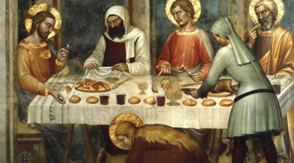 Naquele tempo, um fariseu convidou Jesus para comer com ele. Jesus entrou em casa do fariseu e tomou lugar à mesa. Então, uma mulher – uma pecadora que vivia na cidade – ao saber que Ele estava à mesa em casa do fariseu, trouxe um vaso de alabastro com perfume; pôs-se atrás de Jesus e, chorando muito, banhava-Lhe os pés com as lágrimas e enxugava-lhos com os cabelos, beijava-os e ungia-os com o perfume. Ao ver isto, o fariseu que tinha convidado Jesus pensou consigo: «Se este homem fosse profeta, saberia que a mulher que O toca é uma pecadora». Jesus tomou a palavra e disse-lhe: «Simão, tenho uma coisa a dizer-te». Ele respondeu: «Fala, Mestre». Jesus continuou: «Certo credor tinha dois devedores: um devia-lhe quinhentos denários e o outro cinquenta. Como não tinham com que pagar, perdoou a ambos. Qual deles ficará mais seu amigo?». Respondeu Simão: «Aquele – suponho eu – a quem mais perdoou». Disse-lhe Jesus: «Julgaste bem». E voltando-Se para a mulher, disse a Simão: «Vês esta mulher? Entrei em tua casa e não Me deste água para os pés; mas ela banhou-Me os pés com as lágrimas e enxugou-os com os cabelos. Não Me deste o ósculo; mas ela, desde que entrei, não cessou de beijar-Me os pés. Não Me derramaste óleo na cabeça; mas ela ungiu-Me os pés com perfume. Por isso te digo: São-lhe perdoados os seus muitos pecados, porque muito amou; mas aquele a quem pouco se perdoa, pouco ama». Depois disse à mulher: «Os teus pecados estão perdoados». Então os convivas começaram a dizer entre si: «Quem é este homem, que até perdoa os pecados?». Mas Jesus disse à mulher: «A tua fé te salvou. Vai em paz».