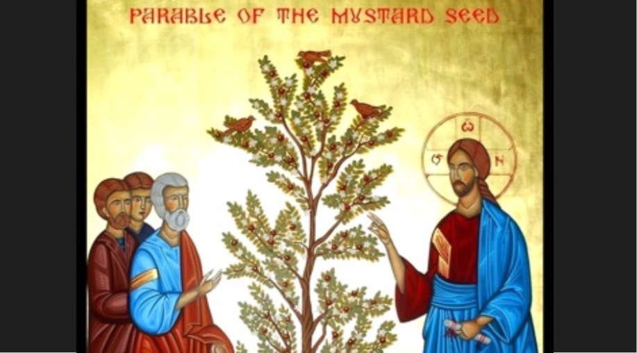 Naquele tempo, disse Jesus: «A que é semelhante o reino de Deus, a que hei-de compará-lo? É semelhante ao grão de mostarda que um homem tomou e lançou na sua horta. Cresceu, tornou-se árvore e as aves do céu vieram abrigar-se nos seus ramos». Jesus disse ainda: «A que hei-de comparar o reino de Deus? É semelhante ao fermento que uma mulher tomou e misturou em três medidas de farinha, até ficar tudo levedado».