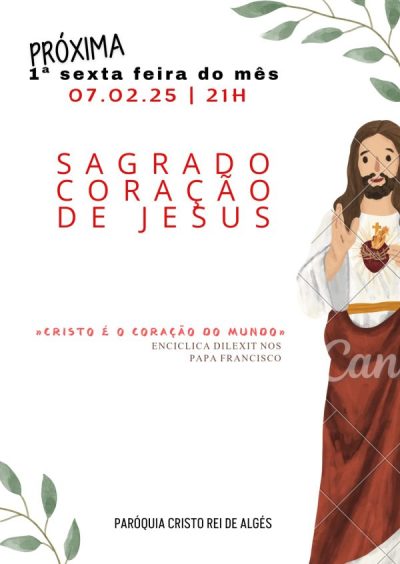 A Igreja Paroquial Cristo-Rei de Algés, às 21h, terá a oração de desagravo ao Sagrado Coração de Jesus com exposição e bênção do Santíssimo Sacramento.